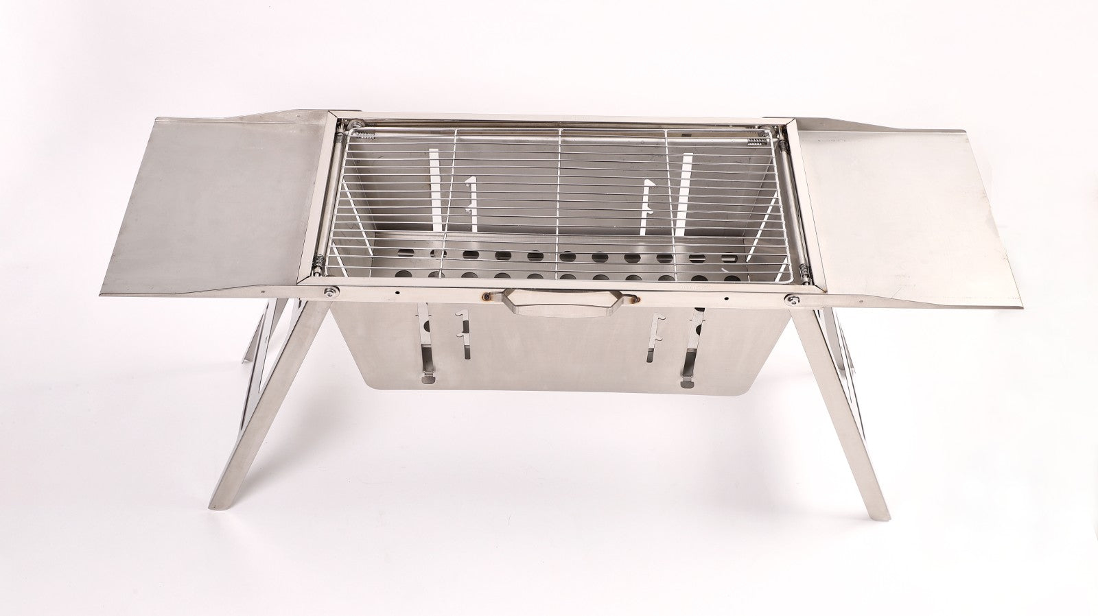 Deze robuuste BBQ van roestvrij staal is opvouwbaar, makkelijk mee te nemen en gemaakt voor jarenlang grillplezier. Dankzij het verstelbare kolenrooster heb je perfecte controle over de hitte – waar je ook bent.